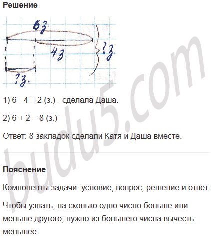 Задание № 2. Катя сделала 6 закладок, а Даша - на 4 закладки меньше. Сколько закладок сделали Катя и Даша вместе?